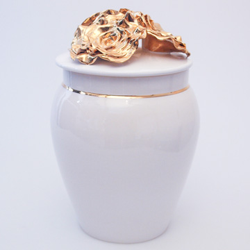 Berner Urne Weiß mit montierter Gold-Rose